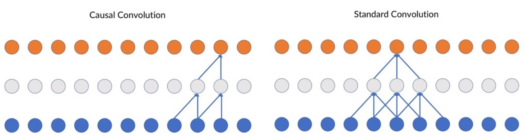 - Dilated Causal Convolution은 Wavenet에서 큰 receptive field를 가지는 autoregressive model을 만들 수 있게 해주는 기술이다.