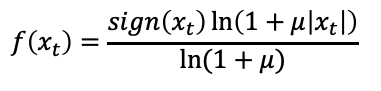따라서 16bit quantization을 8bit quantization으로 줄이기 위해 μ-law companding transformation를 사용한다고 하며, 그 식은 아래와 같다. Linear 하게 quantization 하는 것보다, 위와 같이 Non-linear 한 quantization 방법이 더 효과적이라고 한다. 8bit quantization으로 audio를 바꿔주게 되면 softmax layer의 output size는 256이 된다.