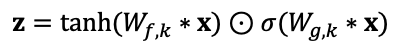 본 논문에서는 gated PixellCNN 논문에서 사용한 gated activation unit을 activation function으로 사용했다. 수식은 아래와 같다.